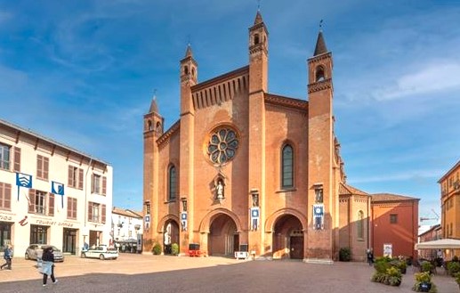 La Cattedrale sorge in corrispondenza del settore orientale del foro dell’antica città di Alba Pompeia, ove sono emerse poderose mura romane di un grande complesso edilizio pubblico. La chiesa primitiva fu ampliata alla fine del X secolo, mentre l’impianto romanico risale all’ultimo quarto dell’XI.